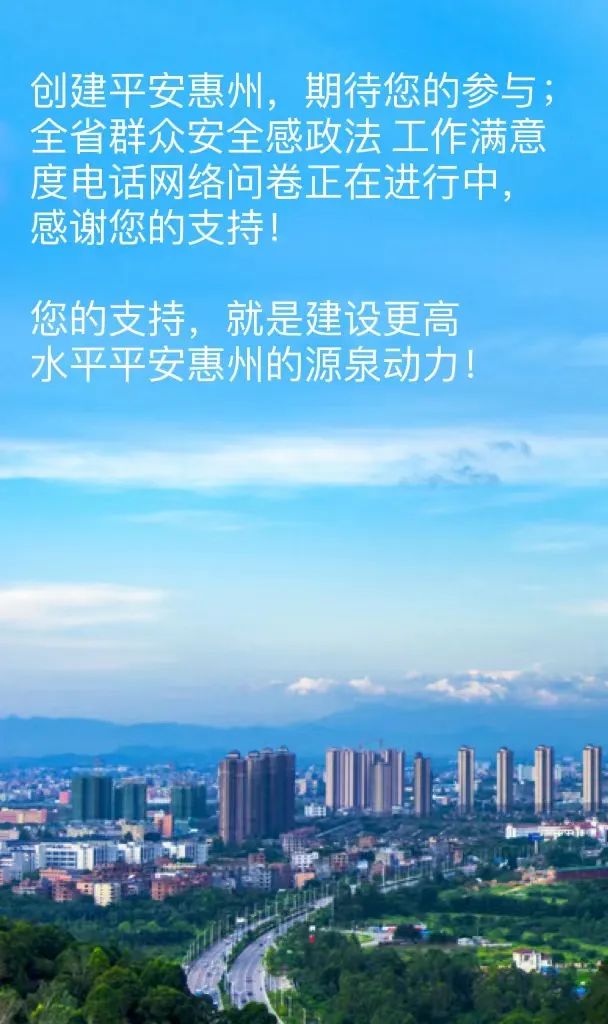 平安惠州 | 全省群眾安全感政法工作滿意度調查正在進行中,感謝您的支持!