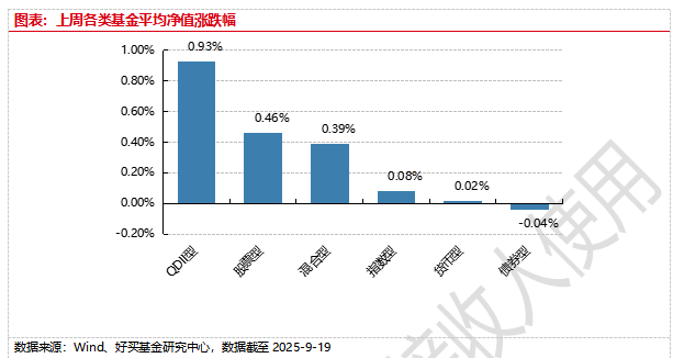 上周,國(guó)內(nèi)權(quán)益基金普漲,其中QDII型基金平均上漲0.93%,股票型平均上漲0.46%。