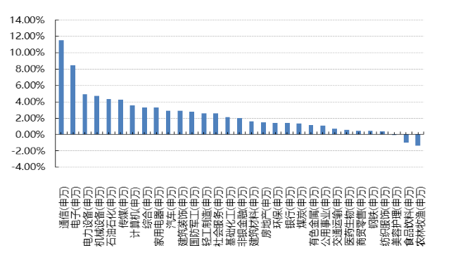 圖表:上周申萬(wàn)一級(jí)行業(yè)漲跌幅